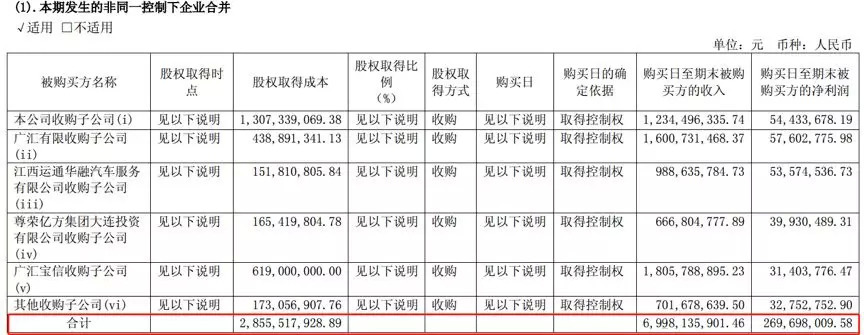 事实上,推动公司营收增长最主要的因素还是收购并表。2018年广汇持续进行业务扩张,并于报告期内进行了一系列的收购,合计斥资超过28亿。