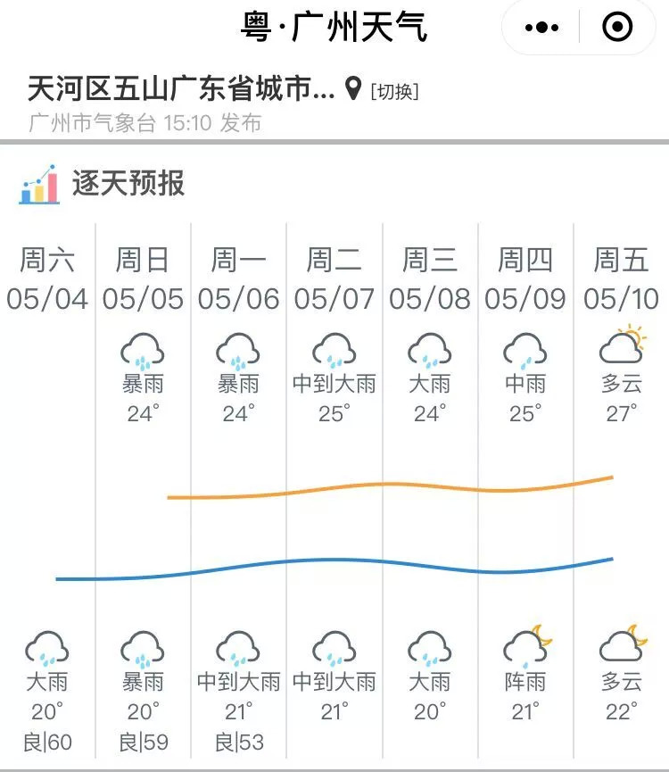 除了持续性强降水,部分市县伴有雷电和8级左右雷暴大风;另外,广东沿海海面有6级~8级大风,部分海域伴有中到强雷雨,雷雨时阵风9~10级或以上。海上船只、海岛旅游等活动需注意安全。