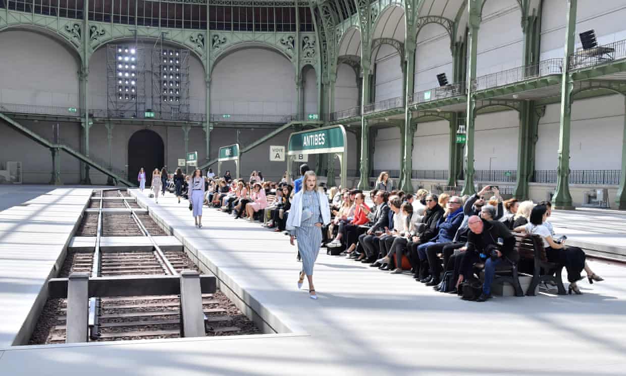 威尼斯、罗马、昂蒂布、圣特罗佩、伊斯坦布尔和爱丁堡,六个城市的指示牌分别立在铁轨的两旁,“车站长椅”上坐着前来看秀的设计师、明星、时尚编辑、买手和品牌邀请的VIP顾客。不管CHANEL是不是要把他们带往这六个目的地,有一点是可以肯定的,那就是CHANEL会把他们带到一个全新的地方。
