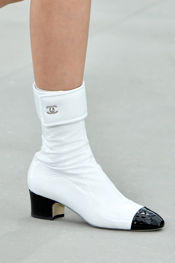 鞋履也许是本季最让人想到老佛爷的产品。许多造型都配有一对双色鞋,而是Lagerfeld曾经最爱用的鞋履配色之一。