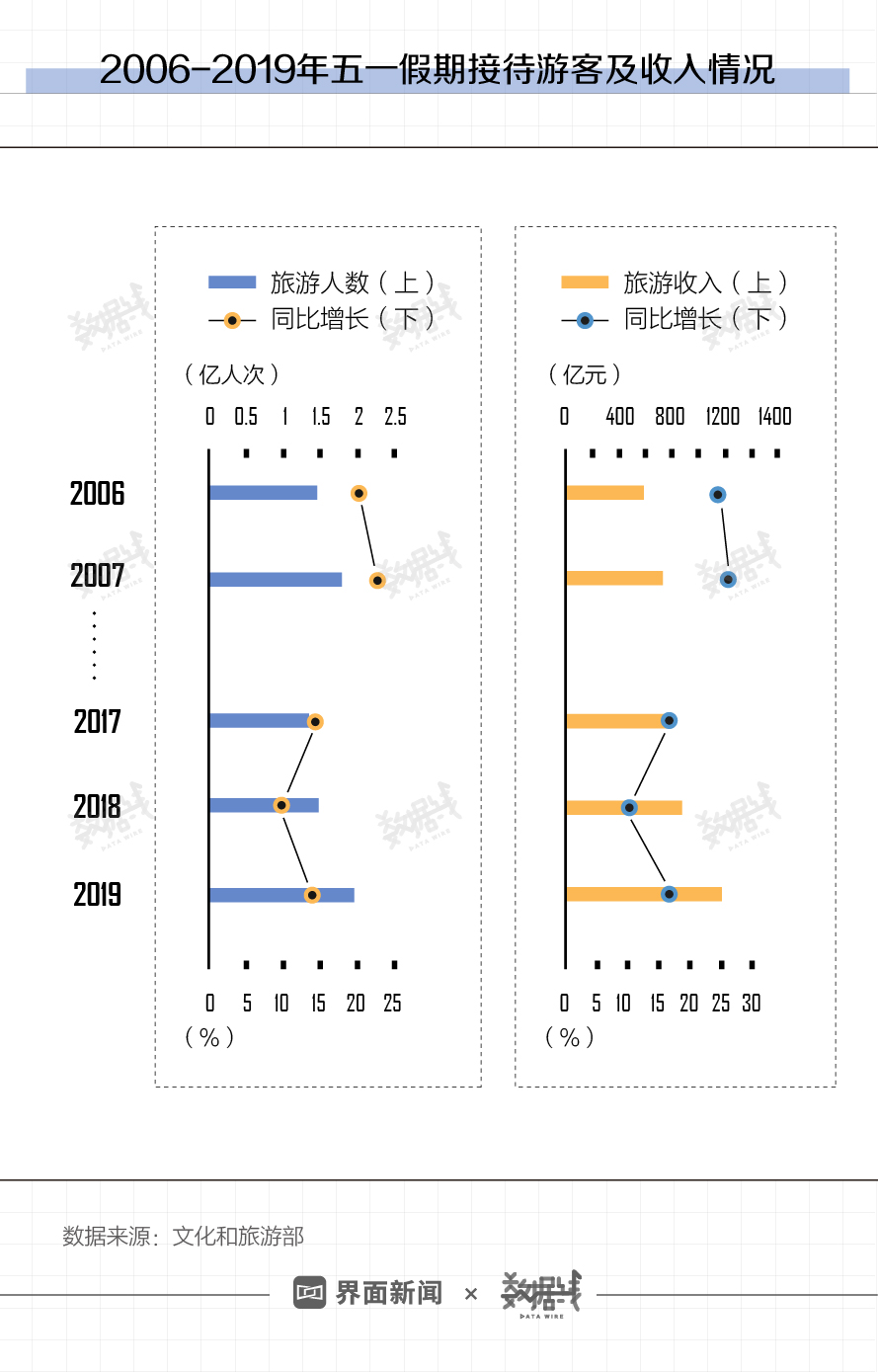 五一假期已过,“黄金周”刺激消费的说法是否应验?界面数据(公众号ID:shujuxian_kuaikai)统计了交通部、民航局、文化和旅游部及地方商务厅等数据,以呈现2019年五一假期的消费盛况。