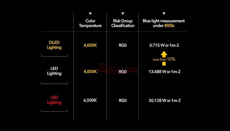 英国一家名为Intertek的专业独立质量检测公司就得出结论称,OLED灯发出的蓝光不到相同亮度和色温的LED灯发出蓝光的10%。