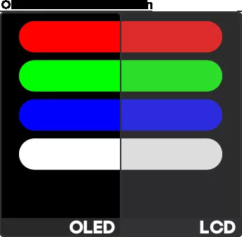 最简单的说,OLED显示黑色是纯黑,LCD其实是灰色。LCD在同一画面明暗差异过大的情况下,都存在暗部细节不清晰、亮部画面过曝的现象,影响视觉体验,导致视觉疲劳。