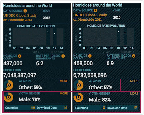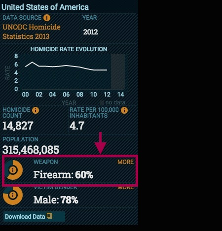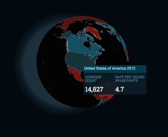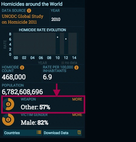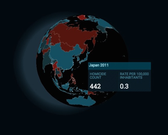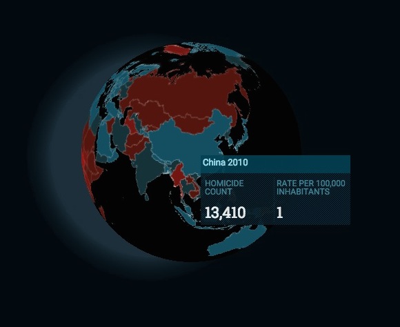 在网站“Homicide Monitor”(谋杀地图)上,你能找到自2000年至2014年(部分)全世界发生的凶杀案的相关信息,包括各国凶杀案的数量、发生的地点、受害者的性别、使用的凶器及死于谋杀的概率等资料。