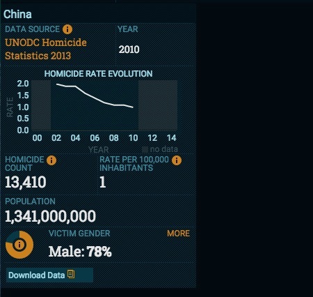 而2010年的中国,每10万人中仅有1人死于谋杀。
