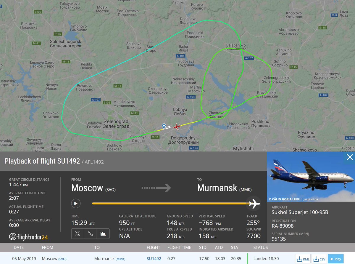 莫斯科时间5月5日晚,俄罗斯航空(Aeroflot)从莫斯科飞往摩尔曼斯克的SU1492次航班在起飞不久后紧急返航,执飞该航班的苏霍伊超级喷气-100型客机在谢列梅捷沃机场实施硬着陆。飞机尾部随即燃起大火,机上有41人不幸遇难。