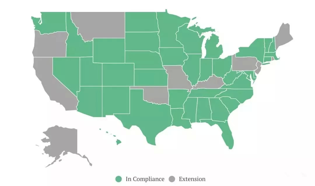 美国联邦政府花了15年的时间在全国范围内实施该法案,这是一个漫长的过程,由于每个州的情况不同,因此实施起来有些混乱。但是,所有的州被要求在2020年10月1日之前必须实行此法案,伊州等部分州将法案实施日定在了最后期限,还有一些州将延期实施。