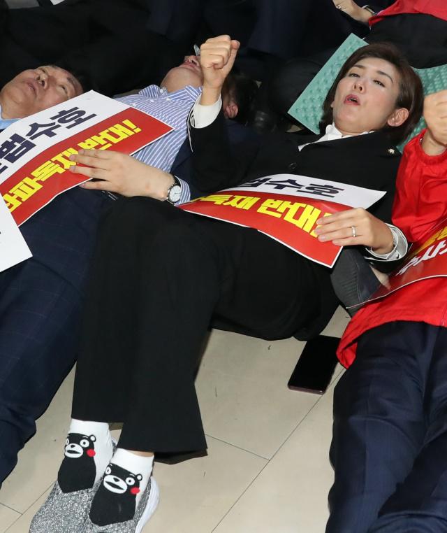 【韩国】在野党女党鞭躺在地上示威熊本熊袜子火了