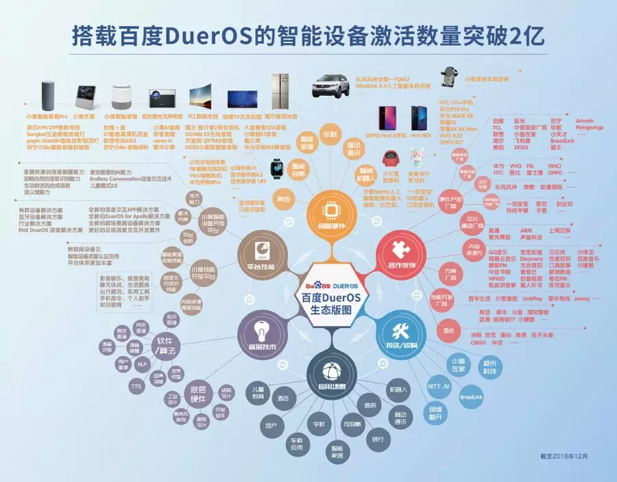 去年双十一,百度已成为智能音箱销售品类的第一,搭载DuerOS的激活设备数量达到2亿台,DuerOS在2018年12月语音交互也超过了16亿次。