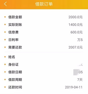 借款人李雪晨称,4月,自己在泡泡分期借了2000元,砍头息600元,7天后还2007元。