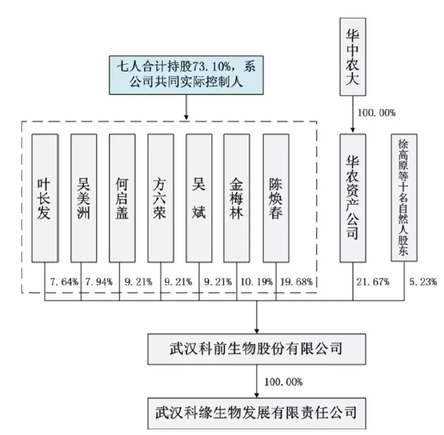 股权结构上,以公司董事长陈焕春为核心的管理层合计持有公司发行前73.10%的股份,是公司的实际控制人。此外,华中农大通过华农资产公司也持有公司21.67%的股权。