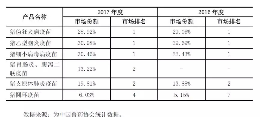 猪用疫苗市场份额领先