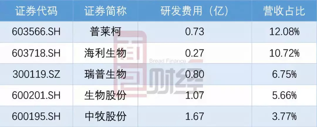 对比A股上市且已披露2018年年报的动物疫苗企业来看,科前生物2018年的研发费用金额和营收占比都处于相对靠后的位置。