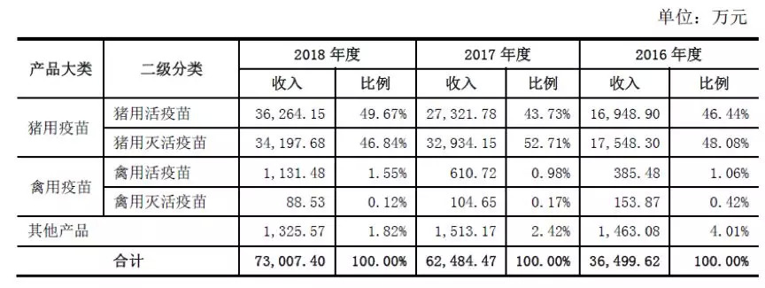 科前生物主营为兽用生物制品的研发、生产和销售,主要产品为猪用疫苗和禽用疫苗。根据公司招股书的披露,其在2017年国内非国家强制免疫兽用生物制品市场销售收入排名第二,在非国家强制免疫猪用生物制品市场销售收入排名第一。