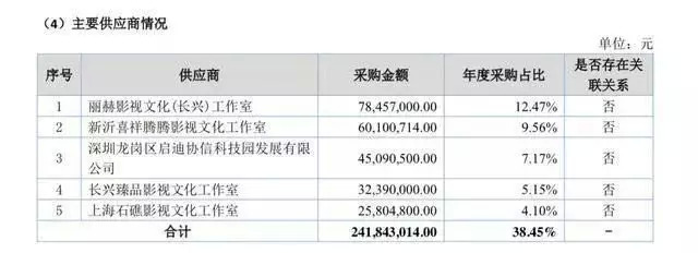 以沈腾为例,在2018年前五大供应商中,第2名新沂喜祥腾腾影视文化工作室、第4名长兴臻品影视文化工作室,均为沈腾实际控制的公司。开心麻花向这两家家公司采购的金额分别为6010.07万、3239万,合计9249.07万,也就是说沈腾的收入在开心麻花的账上过了一遍流水后又回到了自己的口袋。