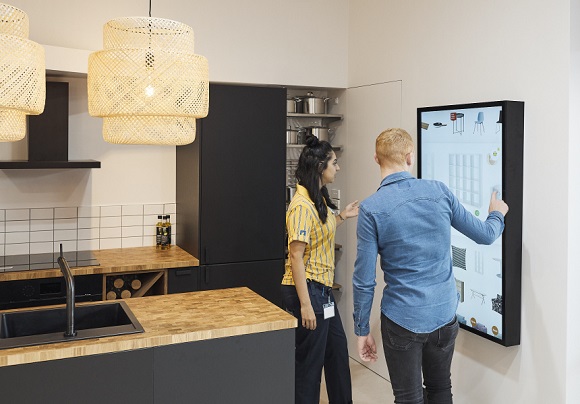 这家迷你店没有仓库,但会有专业设计人员帮助顾客对厨房或居家翻新进行规划,店内墙面上还设有数字购物显示屏,可供顾客下单购物并获得送货上门的服务。