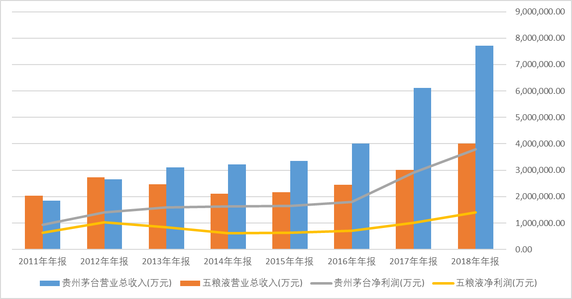 抛开“被带走接受调查”传言不谈,执掌茅台近20年间,袁仁国的确留下了自己的鲜明印迹。2012年起,公司的营收超过了五粮液,并逐渐拉大差距,一骑绝尘。2018年,五粮液的营收为400亿,贵州茅台为772亿。此外,除了牵头组建了茅台史上的第一支营销队伍,袁仁国还在茅台建立了一系列的财务制度,其中包括对资金的管理体系。