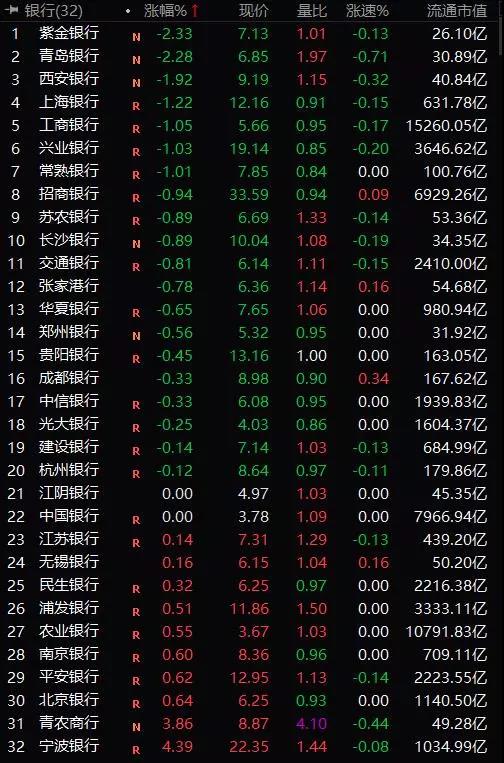 今日早盘表现来看,银行板块指数领跌,四大行A股表现皆弱于大盘,工行和建行一度出现杀跌行情,中国银行和农业银行表现亦处于相对弱势,而整个银行板块亦是跌多涨少。