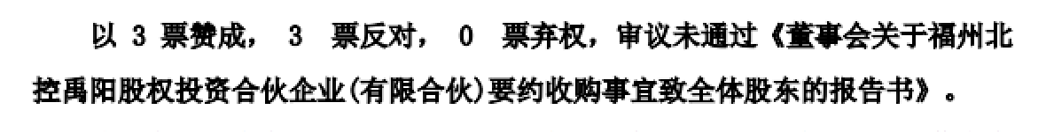 值得一提的是,就要约收购这事,在4月23日金宇车城还审议过一份《董事会关于福州北控禹阳股权投资合伙企业(有限合伙)要约收购事宜致全体股东的报告书》(下称《致全体股东的报告书》),但该议案获得3票赞成,3票反对,最终未审议通过。事出突然无先例,虽然金宇车城的要约收购还在继续进行,但报告书却在董事会上被否,这是否意味着要约收购有合规性问题?