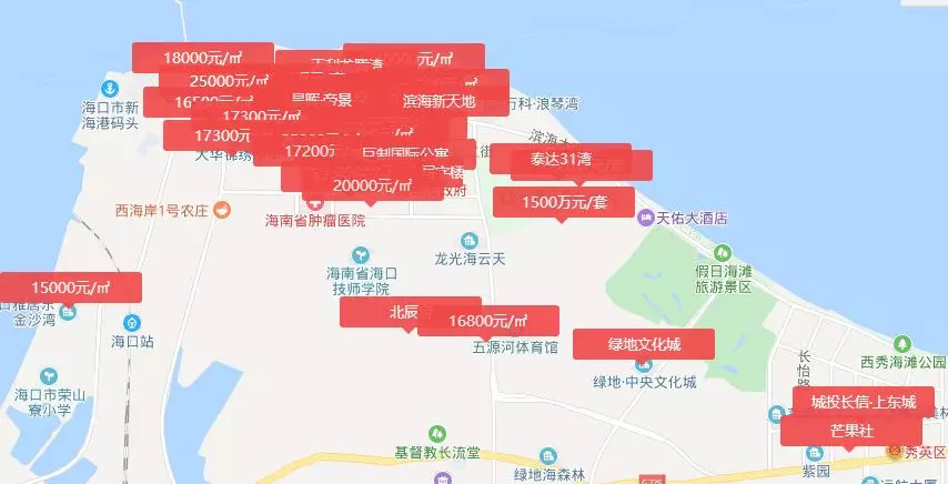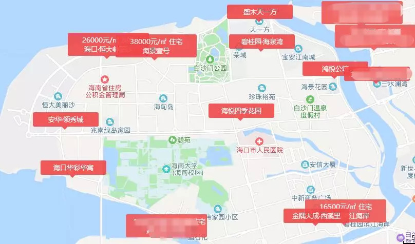 海甸岛比较瞩目的楼盘当属恒大美丽沙,靠海别墅,附近就是白沙门公园,最低时均价11000元,目前均价23000元。有度假、养老需求的朋友可以过去看看。