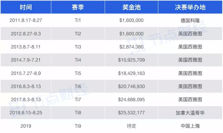 历届Ti赛的信息