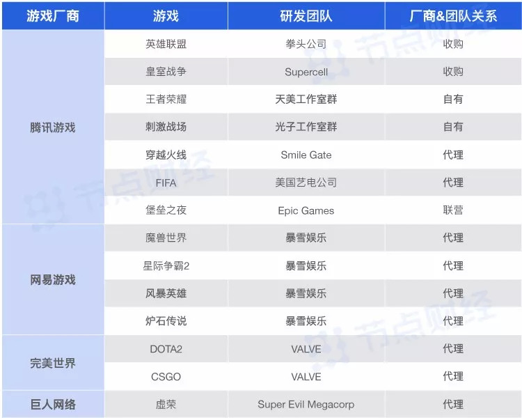 主流电竞游戏及游戏厂商和研发商的关系