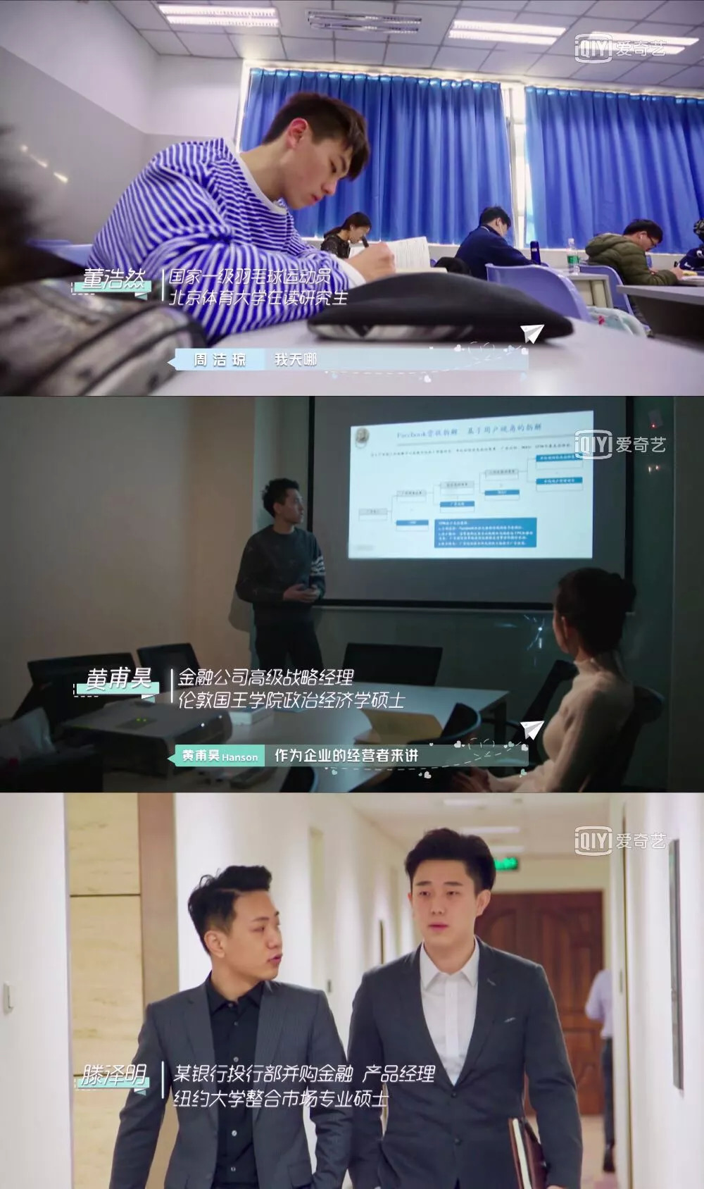 8位嘉宾的职业涵盖了运动员(董浩然)、平面模特(杨倩倩)、金融经理(黄甫昊)、投行经理(滕泽明)、建筑师(刘问)、财经主播(于超)、工程师(周海涛)、制片人(赵文竹)。