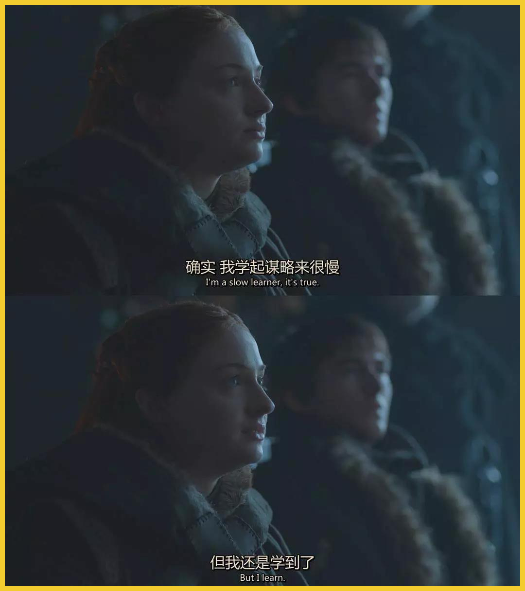 珊莎让我们看到,勇敢、坚强、隐忍、智慧……这些在维斯特洛大陆上经常用来形容男性的词汇,在女性身上也可大放异彩。