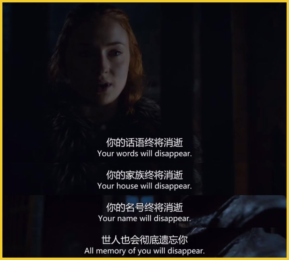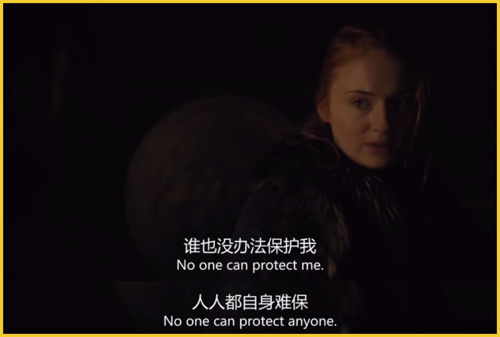 珊莎没有错,在经历了一切后,她终于明白,在权力的斗争中,人人自危,更何谈保护其他人呢?▼