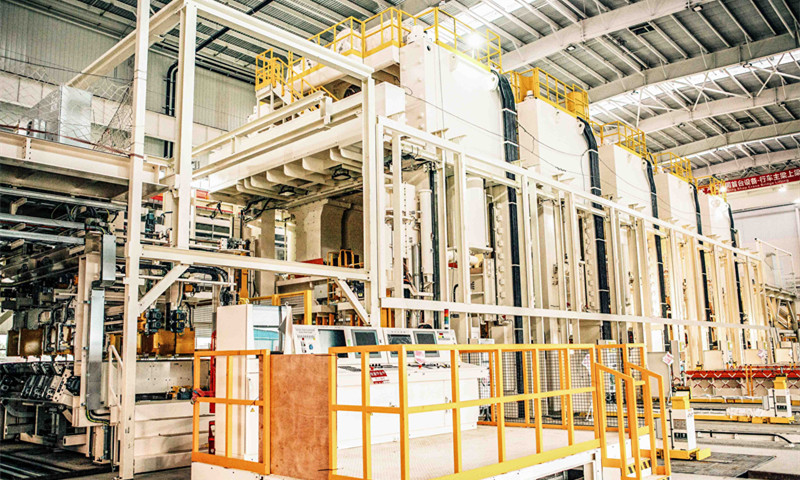 在短暂的参观活动中,我们看到拜腾工厂的冲压车间采用目前主流的伺服压机,该压机平均每3秒可压出一个工件,是目前国内最快的汽车冲压生产线之一;在焊装车间,拜腾工作人员告诉界面汽车目前焊装车间配备了335台专属定制机器人,可实现自动化率达99%;在其涂装车间首次采用了横置烘房技术及三涂两烘工艺、薄膜前处理等较新的涂装技艺;而在电池车间,我们也看到了拜腾自主设计的电池包,由宁德时代提供电芯及模组,肯联铝业提供铝制电池底壳。