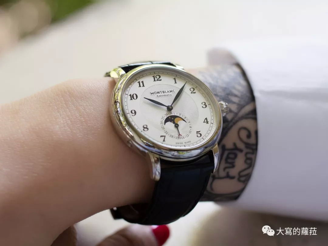我一直都认为万宝龙对于各种阶层的商务人士佩戴都是很好的选择,而明星系列更适合经理人佩戴,为什么是男性经理人呢?男性经理人承接着带领团队的压力与能力,对上还有交代团队业务成绩表现的压力与能力,这个处于一个非常需要各层整合协调能力的人物,首先需要的是一款设计不张扬、却也不是默默无闻品牌的腕表,往上不侵犯、往下不炫耀。明星系列以浑圆的表壳线条加上面盘具有古典书写体阿拉伯数字时标,搭配正装非常对味,三万左右的价格就可以买到月相日历功能,更是从各方面考量都十分值当。