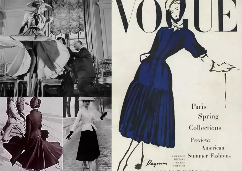迪奥首秀革命性时装引起业界巨大震动。发布会后,由Dagmar绘制的迪奥服装插画登上Vogue杂志封面。