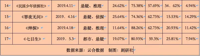 今年悬疑类作品受众偏向于女性化的现象进一步凸显。剧研君统计了今年播出的7部悬疑剧的受众占比,居然没有一部剧的男性受众占比突破30%。男性受众占比最高的《铁探》也比《无证之罪》下跌了9个百分点,而《绅探》《七日生》《冷案》等剧的男性占比皆不足20%。