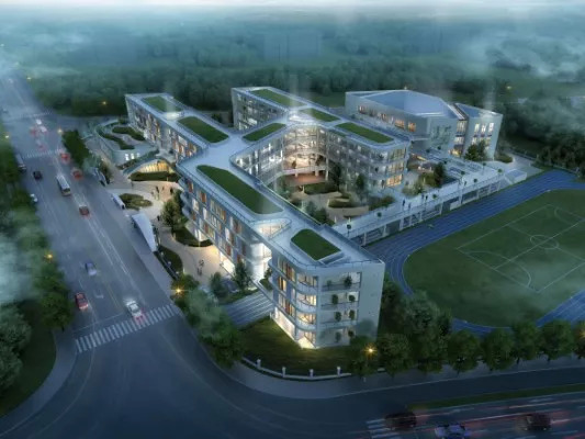 位于三塘单元东新路和颜三路西北侧,总用地面积约103亩,总建筑面积116124㎡。学校为54班九年制学校,是国际化与书院式有机融合的民办学校。初中部计划招生8个班,小学部计划招生5个班。