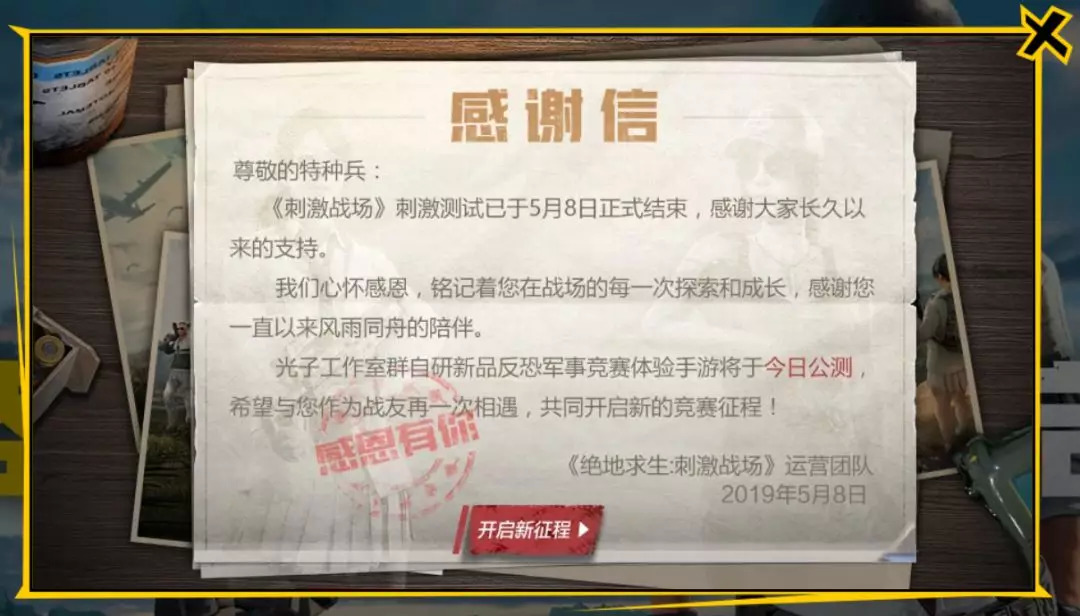 今天凌晨,《 刺激战场 》官网发布了一则通知,《 刺激战场 》的测试正式结束,并且光子工作室的新项目会在同一天上线。