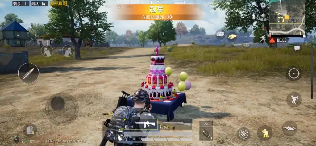 而如果玩家实在特别想和剩余的玩家决一胜负,也可以选择继续游戏,最终获胜的玩家可以获得大蛋糕作为奖励,同时还能获得一句颇为熟悉的“大吉大利,和平精英”。