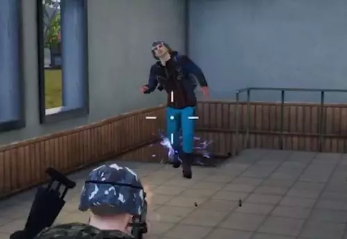 同样地,《和平精英》也不会出现玩家倒地。以这次近距离击倒为例,敌方玩家会缓缓掏出自己的盒子,并单膝跪地,挥手向玩家示意道别,随后安然退出演习竞赛。