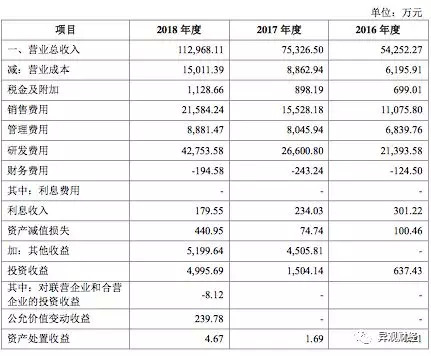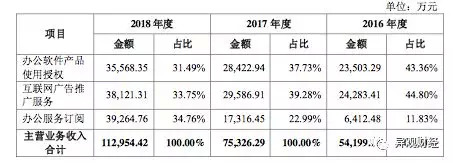招股书显示,2016年、2017年、2018年金山办公分别实现营业收入5.43亿元、7.53亿元、11.30亿元;分别实现净利润1.30亿元、2.14亿元、3.11亿元。公司主营业务综合毛利率分别为88.57%、88.23%、86.72%。