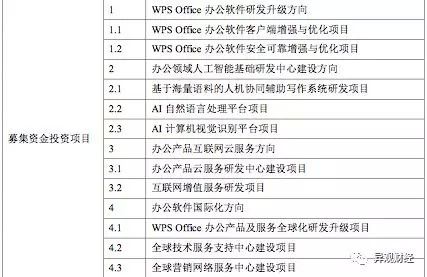 据招股书披露,金山办公拟募集资金20.5亿元。募集资金将用于WPS Office办公软件研发升级、办公领域人工智能基础研发中心建设、办公产品互联网云服务方向、办公软件国际化方向等四个方向。