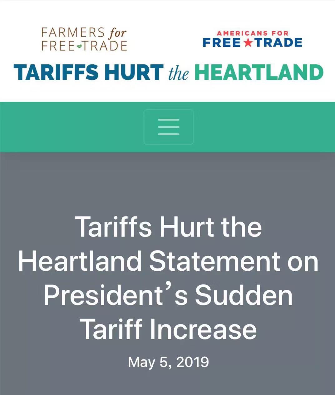 “关税伤害美国腹地”对总统突然发起加征关税的声明
