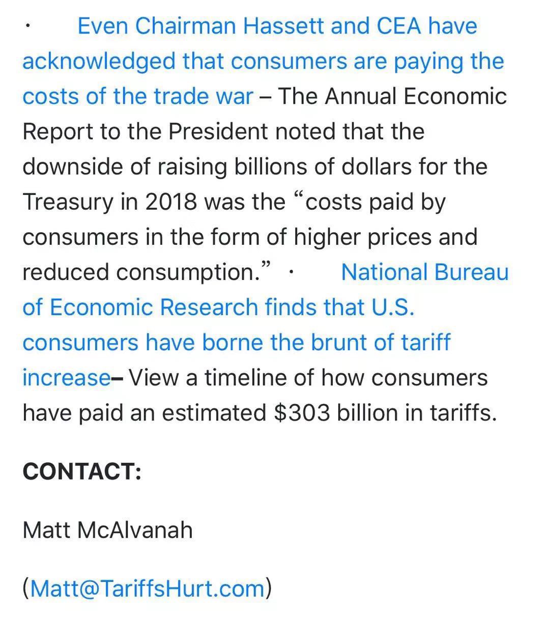 - 甚至连哈塞特主席(Kevin Hassett)和CEA(Council of Economic Advisers,白宫经济顾问委员会)都承认,消费者正在支付贸易战的成本
