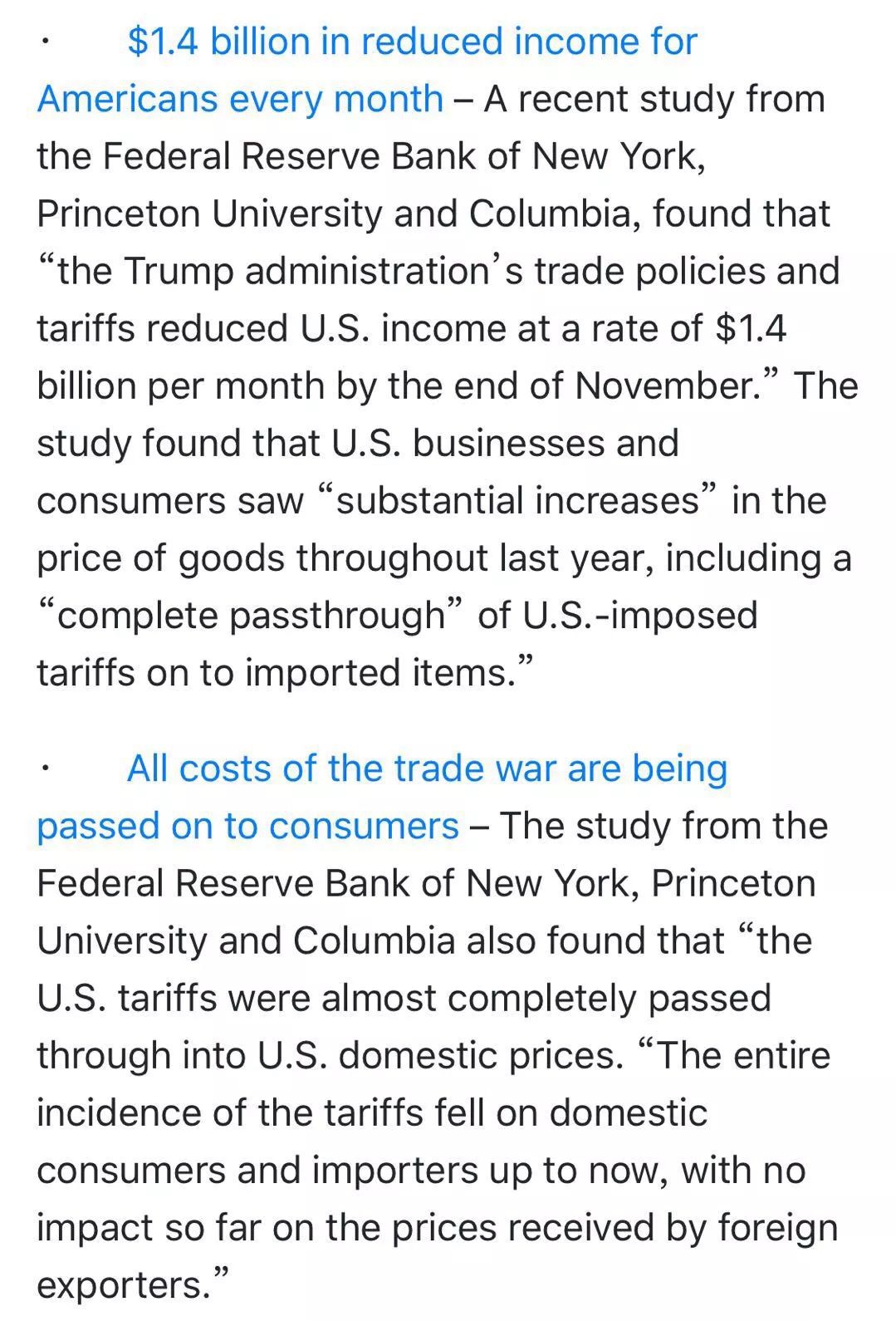 - 贸易战的所有成本都传导到了消费者身上