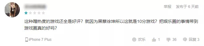 但也有玩家在评论区中质疑这种玩梗的意义,并毫不客气地直言“把娱乐圈的事情带到游戏圈真的好吗?”。不过这些质疑玩梗蹭热度的评论大多数都因为收到了过多的反对而被系统折叠,在这方面,玩梗派玩家在人数上明显更占优势,他们一边刷着“蔡徐坤打篮球”的梗,一边把《鸡你太美》捧上了“Taptap满分神作”的宝座。