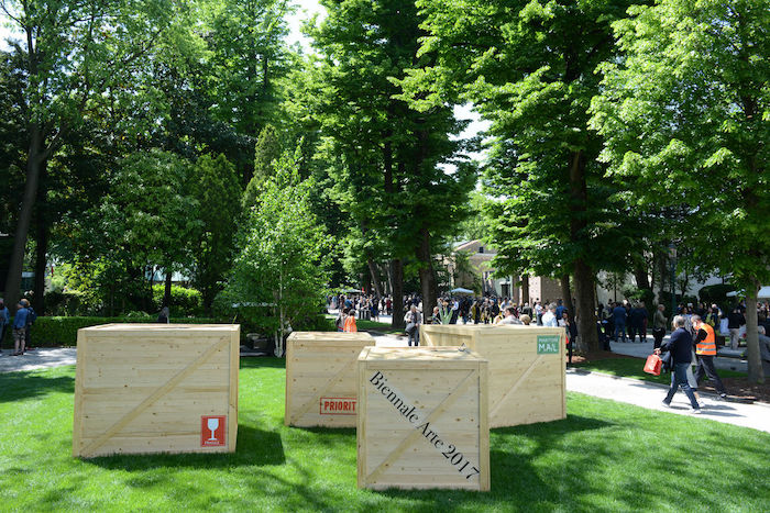 无论如何,众多画廊都会到场。即使威尼斯双年展洗去了铜臭味,这些画廊也会为了合作艺术家和画廊的发展筹措资金,把展品另行打包销售。2017年展会的展览目录中就特别提及,英国馆展出的菲利达·巴洛(Phyllida Barlow)的作品“受到了豪瑟沃斯画廊的慷慨支持”。