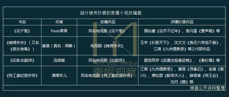 这些年曾被网传、或被原作者直接声讨的抄袭改编剧并不少,壹娱观察也根据网络公开资料,整理了部分曾陷入抄袭风波的大IP。