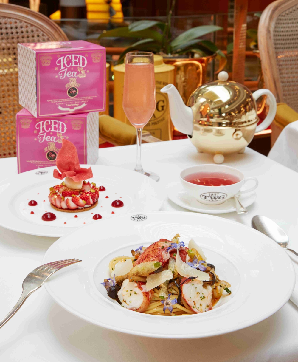 TWG奉上母亲节暖心套餐,将茗茶、西餐和甜点搭配起来,浪漫又充满仪式感。粉色的火烈鸟绿茶跟甜点相得益彰。