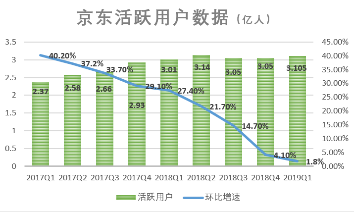 当然这只是个案,不过从京东活跃用户数据来看,2018Q4增速仅为4.1%,维持在了3.05亿人次。