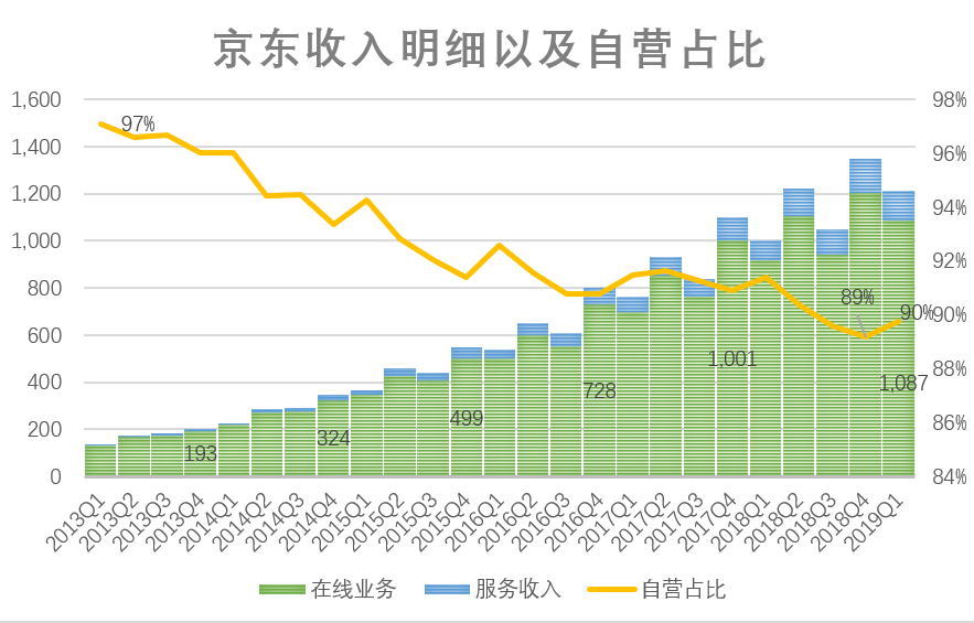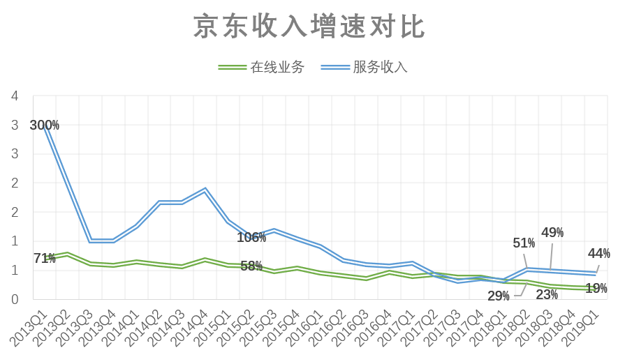 2019Q1的利润如此亮眼,服务收入功不可没。重视服务收入,意味着京东的商业模式正在发生变化。