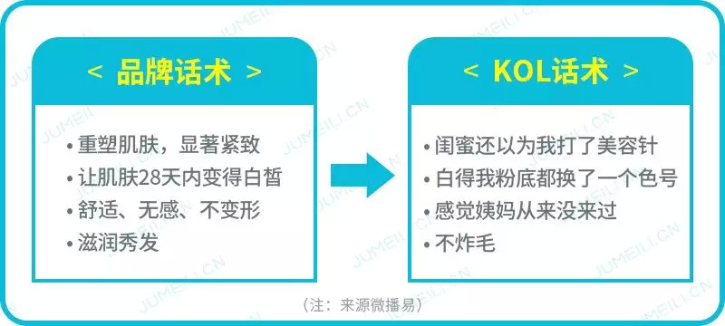 2、为KOL准备“谈资”——将产品抽象的功能利益,变成KOL值得一说的谈资。简单地说,就是以KOL的语言说清产品优势。比如许多品牌会强调稀有珍贵的化学成分、权威科学研究机构的认证,而在KOL口中,会转化成贵妇化妆品里都有的抗老成分、实验室品牌等。