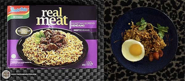 仁当是一种起源于印尼的肉类美食,类似咖喱,但液体含量比一般的印尼咖喱少,也是印尼和马来的国菜之一。营多的这款方便面加入了真正的仁当牛肉作为调料包,好的面条和仁当相得益彰的配合使得其脱颖而出,这也是营多方便面时隔几年的入榜。